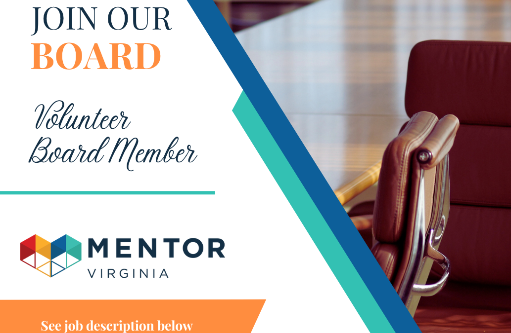 Completing the 2026 MENTOR Virginia Board of Directors Application (Google Form) and participating in an interview will help the Board of Directors identify the right fit for both the candidates and the organization. All new directors are elected by a majority vote of current board members. Applications will close on April 30th.